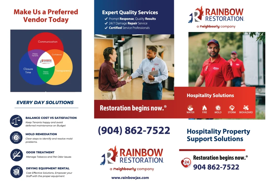 Rainbow Restoration provides fast, structured restoration support for hospitality properties throughout Jacksonville and surrounding areas.